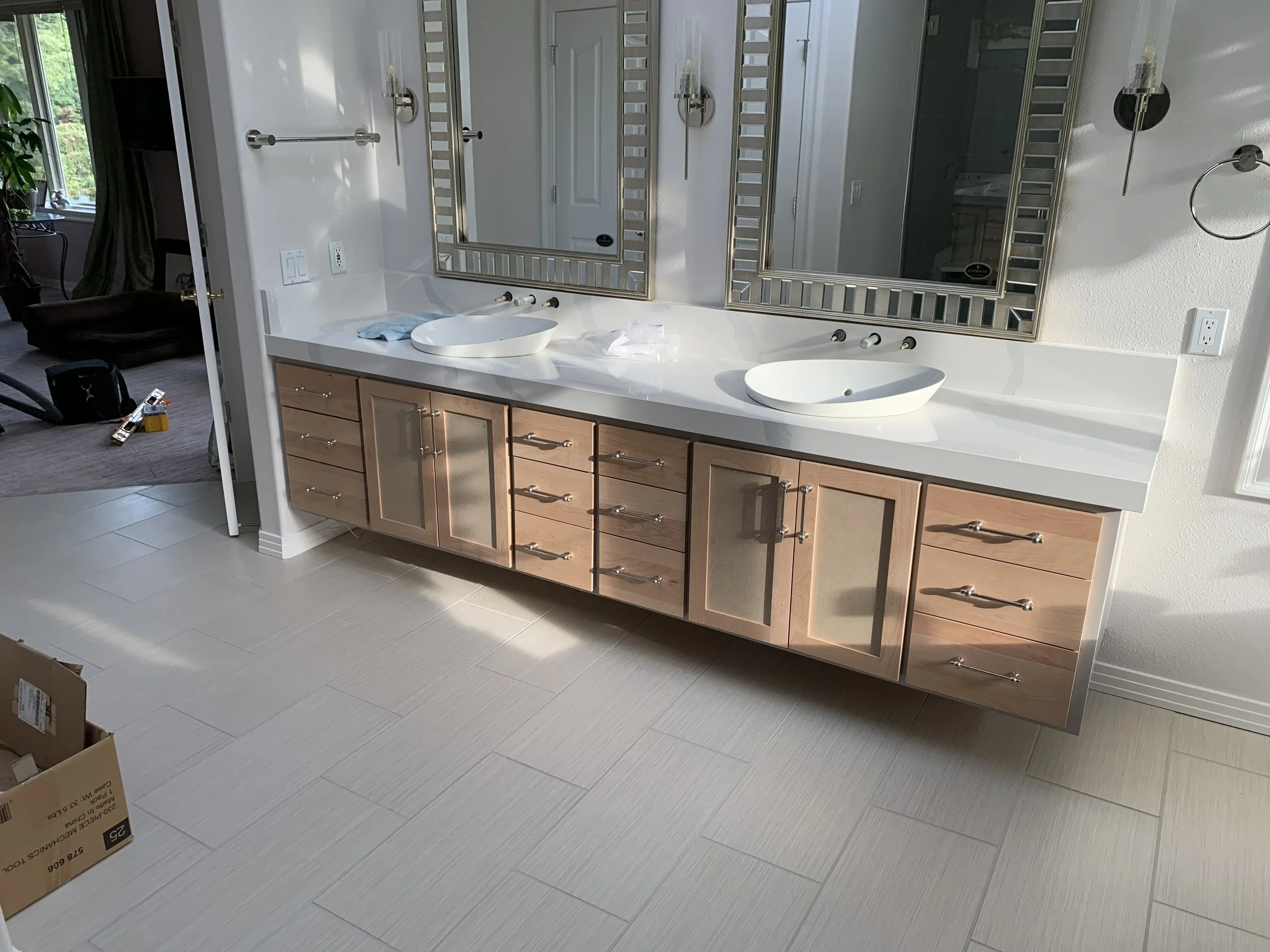 Our work speaks for itself. Custom paint grade floating cabinets. Built to support a younger me and much more...